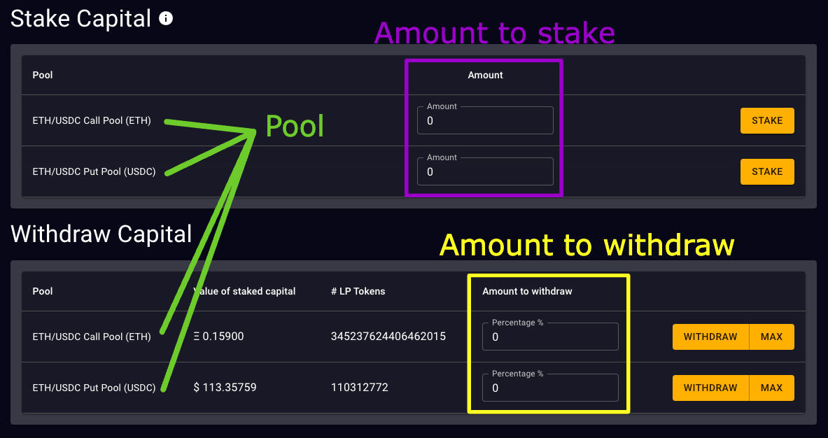 * Please keep in mind that the staked capital you provided has been used as liquidity for options trading. There might still be some capital that is locked in options, so you might have to wait for it to get unlocked.