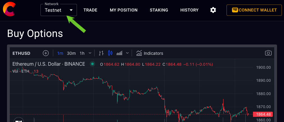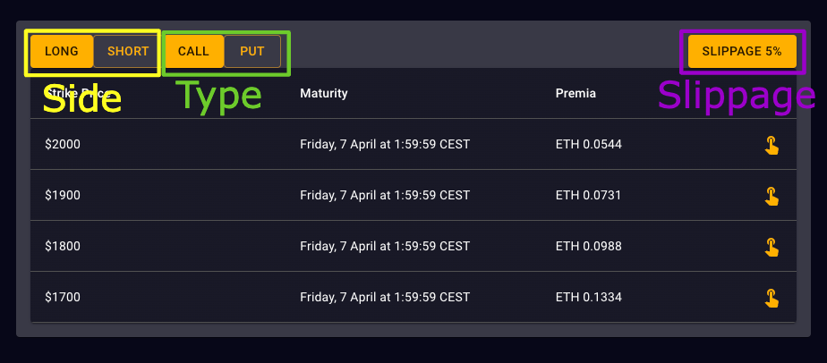 1. Select your prefered pool. Based on underlying asset and the option type.
