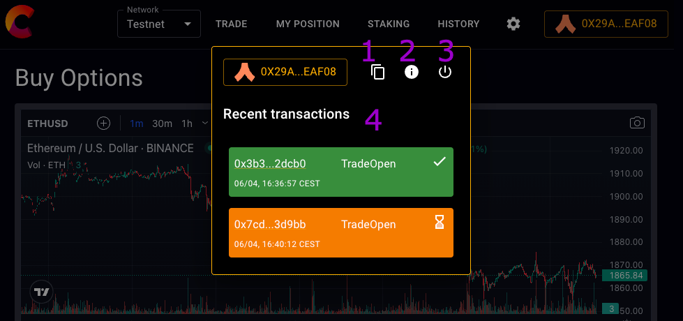 1. **Copy address** - clicking this button will copy your wallet's address into the clipboard
