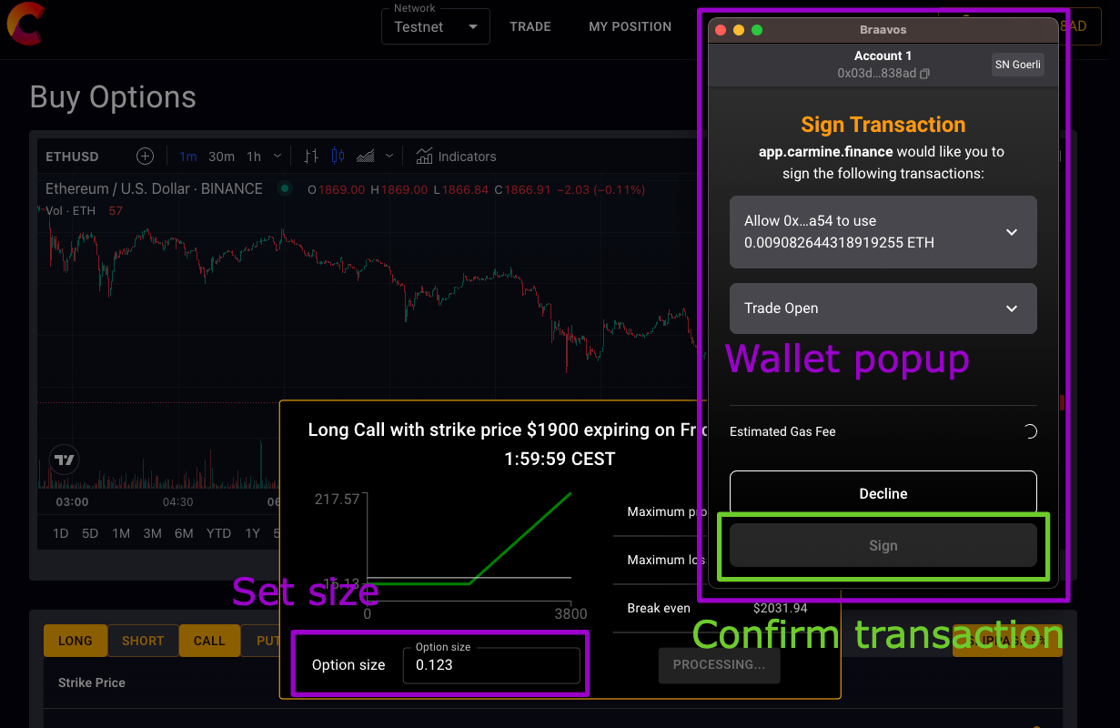 <figure><img src="https://1360602361-files.gitbook.io/~/files/v0/b/gitbook-x-prod.appspot.com/o/spaces%2F0ap7Rr4WjGY7OvFI4uba%2Fuploads%2Fe5Hn9Lu7IA4GdiQVFKbY%2Fwallet-confirm.png?alt=media&#x26;token=a9cbe3ea-aafe-4940-bf1f-f8a41c4ac5b7" alt=""><figcaption><p>Set size and confirmation</p></figcaption></figure>