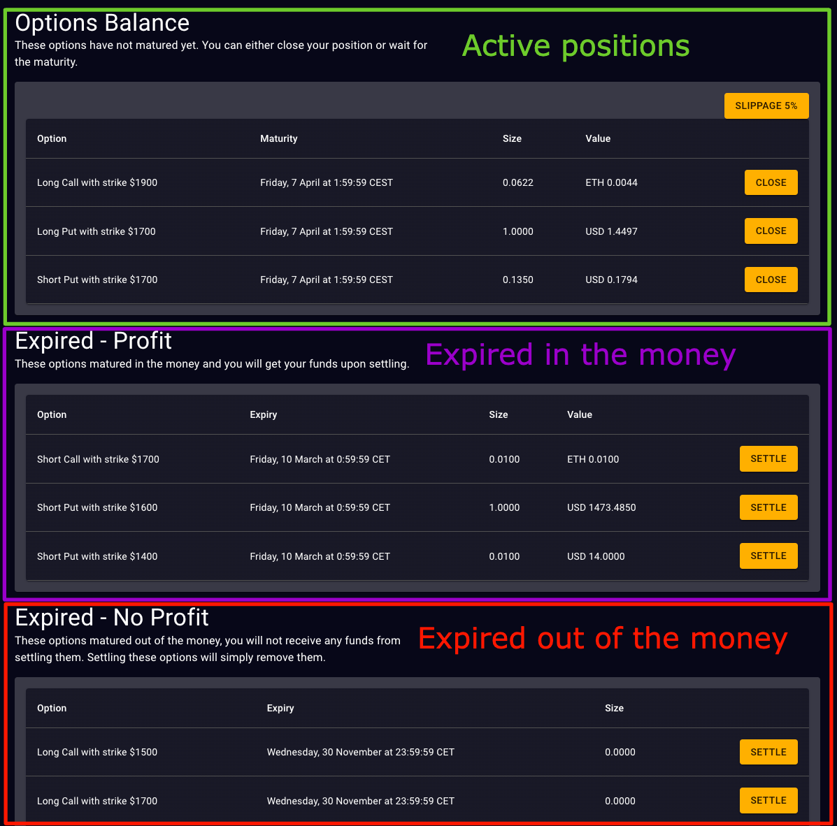 2. Settle (expire) options that are passed their maturity. To receive the profit you gained through buying those and to receive the remaining locked capital from sold options.&#x20;